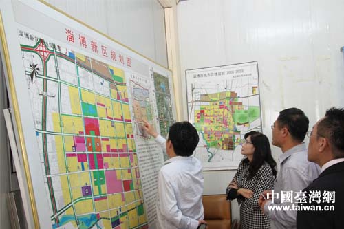 秦慧珠仔細聽取有關人員對淄博新區(qū)規(guī)劃建設有關情況的說明。(圖片來源:淄博市臺辦)