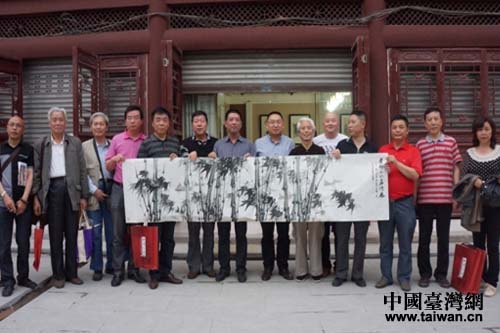 德陽市臺(tái)聯(lián)與眉山市臺(tái)聯(lián)書畫交流合影。(圖片來源:德陽市臺(tái)辦)