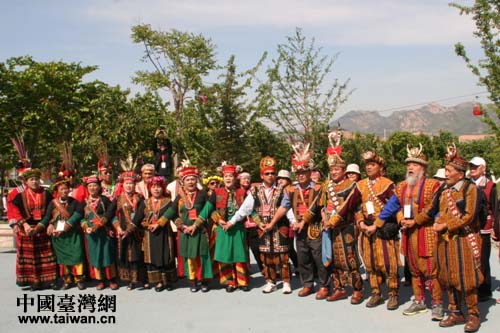 在青島世園會臺灣園,38位身穿華麗民族服飾的臺灣少數(shù)民族客人手挽手唱起祝福歌,跳起民族舞,吸引了不少游人駐足。這些臺灣少數(shù)民族長老頭目文化交流團的成員來自賽夏族、泰雅族、阿美族、太魯閣族、魯凱族、葛瑪蘭族、布農(nóng)族、排灣族8個民族。