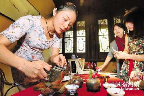 中國臺灣網(wǎng)5月12日杭州消息 喝茶,是一種大眾生活方式,而在浙江連橫紀(jì)念館話茶,則更有一番兩岸文化交流的情趣。日前,以“不語茶,可會心”為主題瑪瑙雅集之茶養(yǎng)生活動在瑪瑙寺連橫紀(jì)念館舉行,旇а偶鳛2014第十屆中國(杭州)國際名茶博覽會重要活動之一,將新穎獨(dú)特的臺灣茶文化靜靜融入每一位茶文化愛好者的生活,以精致、生活、創(chuàng)意的視角促進(jìn)兩岸茶文化交流。