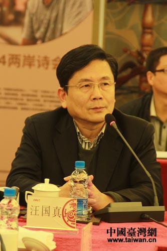 著名詩人汪國真在兩岸詩會高端論壇上講話。(中國臺灣網(wǎng) 雍紫薇 攝)