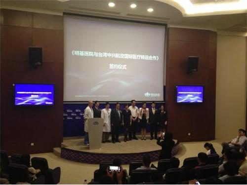 臺(tái)灣中興航空公司與蘇州明基醫(yī)院共同簽署聯(lián)合開(kāi)展航空醫(yī)學(xué)和緊急救援基地的戰(zhàn)略合作協(xié)議。(圖片來(lái)源:蘇州臺(tái)辦)