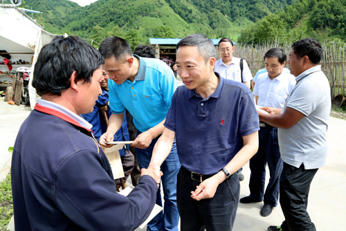 6月16日,由省臺辦副主任趙宇、副巡視員楊志學帶隊,深入省臺辦另一個聯(lián)系點瀘定縣德威鄉(xiāng)海子村。該村是瀘定縣新村建設項目重點打造的村組之一,在新村建設“山、水、田、林、路”綜合治理中,省臺辦協(xié)調了380萬資金用于道路和公共設施建設。在村組的農(nóng)家院落里,趙宇、楊志學及處級以上領導干部與“一對一”幫扶聯(lián)系貧困戶當面認親,送上個人捐款,詢問村民衣食住行方面的情況。在德威鄉(xiāng)貢嘎山寄宿制小學,趙宇一行為30名貧困學生送上了臺胞彭蔭剛先生的15000元助學款,并詳細了解了由省臺辦協(xié)調450萬元臺胞援建經(jīng)費修建學校綜合樓的前期籌備工資情況。