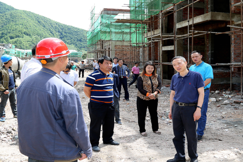 四川省臺辦主任周敏謙察看了解發(fā)旺村小學恢復重建情況。(圖片來源:四川省臺辦)