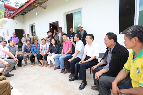 四川省臺辦主任周敏謙(中)慰問發(fā)旺村貧困戶。(圖片來源:四川省臺辦)