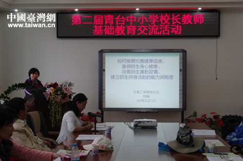 青臺基礎(chǔ)教育研討會 臺灣教師林靜發(fā)言。(圖片來源:青海省臺辦)