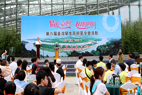 2015第六屆臺(tái)灣學(xué)生天府夏令營(yíng)開營(yíng)儀式現(xiàn)場(chǎng)。(圖片來源:四川省臺(tái)辦)