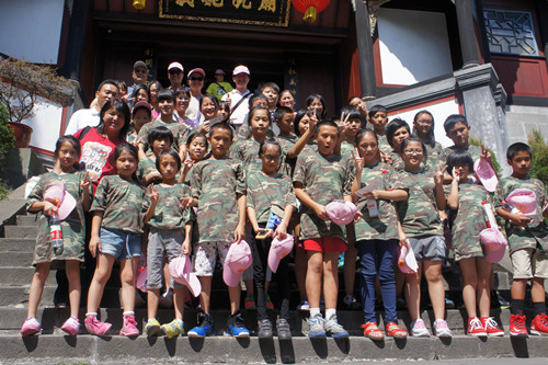 臺(tái)灣新竹縣桃山小學(xué)師生參觀都江堰合影。(圖片來源:四川省臺(tái)辦)