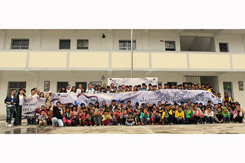 兩岸愛(ài)心人士與學(xué)校學(xué)生合影。