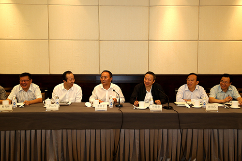 四川省委常委、省委農(nóng)工委主任李昌平(左三)等領(lǐng)導(dǎo)出席座談會(huì)與臺(tái)商交流。