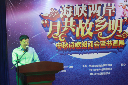 陳福林在致辭中說,在中秋月圓之際,我們歡聚一堂聆聽雅韻、陶冶情操,以詩為媒、以月喻圓,深情祝愿海峽兩岸的親友安康、早日團(tuán)圓,意義非凡。兩岸同胞同根同源、同文同種,命運(yùn)與共。中華文化是兩岸同胞共同的精神財(cái)富,是血脈相連的精神紐帶。希望在綿生活工作的臺胞臺屬將我們的祝福和深情轉(zhuǎn)達(dá)給島內(nèi)親友,共度佳節(jié),共同傳承中華文化優(yōu)秀傳統(tǒng),共同推動綿陽與臺灣經(jīng)濟(jì)、文化、旅游交流交往再上新臺階,為加快建設(shè)國家科技城和幸福美麗綿陽貢獻(xiàn)力量。