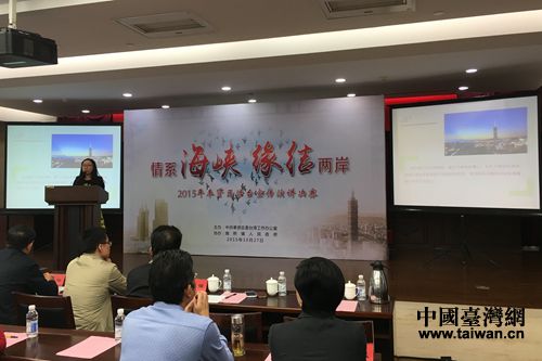 中國(guó)臺(tái)灣網(wǎng)11月3日上海訊 10月27日下午,上海奉賢區(qū)舉行了2015年涉臺(tái)宣傳教育活動(dòng)——“情系海峽,緣結(jié)兩岸”的首個(gè)全區(qū)活動(dòng)———涉臺(tái)主題演講比賽。從預(yù)賽遴選出的來自各鎮(zhèn)、社區(qū)、開發(fā)區(qū)組織推薦的10篇演講稿進(jìn)入決賽。上海市臺(tái)辦宣傳處處長(zhǎng)顧祖華,奉賢區(qū)委統(tǒng)戰(zhàn)部副部長(zhǎng)、區(qū)臺(tái)辦主任徐育清,奉賢區(qū)委宣傳部副部長(zhǎng)張文權(quán),奉賢區(qū)文化館館長(zhǎng)傅強(qiáng)出席活動(dòng)并擔(dān)任比賽評(píng)委。同時(shí),近150位來自奉賢區(qū)各鎮(zhèn)、社區(qū)、開發(fā)區(qū)的對(duì)臺(tái)分管領(lǐng)導(dǎo)、對(duì)臺(tái)干部、居委干部以及各委辦局統(tǒng)戰(zhàn)干部出席此次活動(dòng)。