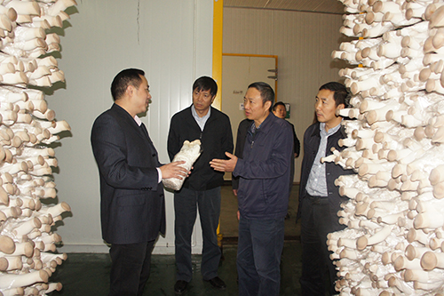 周敏謙(左三)在南充市星河生物科技有限公司了解食用菌生產(chǎn)情況。
