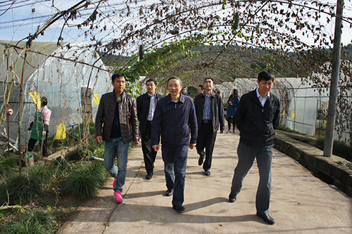 四川省臺(tái)辦主任周敏謙(右二)在廣安市前鋒國家現(xiàn)代農(nóng)業(yè)示范區(qū)調(diào)研。
