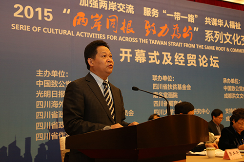 “兩岸同根 致力為公”系列文化交流活動是中國致公黨四川省委主辦的兩岸交流品牌活動,從2011年舉辦至今,已連續(xù)舉辦五屆。楊興平在致辭中指出,五年來,“兩岸同根”系列交流活動充分發(fā)揮“溝通兩岸、促進川臺交流合作”的平臺作用,在展示四川社會經(jīng)濟文化發(fā)展成就,促進四川與臺港澳地區(qū)以及海外華人華僑之間在經(jīng)濟、歷史、民俗、文化、生活等方面的交流與融合,增進兩岸同胞親情等方面,起到了積極的推動作用。他表示,致公黨四川省委將把這一活動長期舉辦下去,開展更加形式多樣的民間文化交流活動。