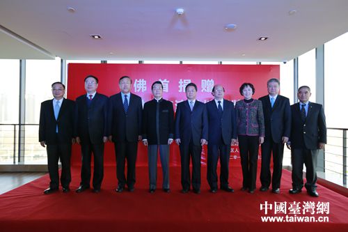中國臺灣網12月30日天津訊 12月30日上午,佛首捐贈暨天津市對臺交流基地授牌儀式在天津市武清區(qū)博物館舉行。中國國民黨中央評議委員會主席團主席張榮恭,中國國民黨中央評議委員李建榮、葉景成,佛首捐贈人、臺商吳尚鷹等臺灣嘉賓出席此次活動。