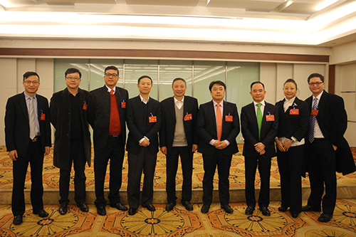 四川省臺(tái)辦主任、省政協(xié)港澳臺(tái)僑和外事委員會(huì)主任周敏謙(左五)和省委統(tǒng)戰(zhàn)部常務(wù)副部長(zhǎng)聶文強(qiáng)(左四)看望列席會(huì)議的僑胞、臺(tái)胞代表。