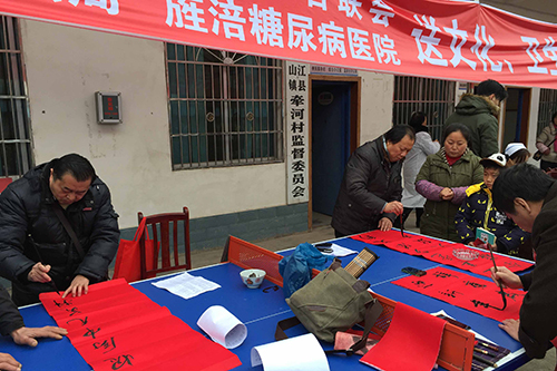 此次“三下鄉(xiāng)”活動(dòng)分別在牽河村和新拱橋村各開展半天;顒(dòng)中,市臺(tái)辦、市司法局的機(jī)關(guān)干部、律師和臺(tái)聯(lián)會(huì)理事向村民發(fā)送法治宣傳資料,開展普法教育和法律咨詢,并結(jié)合志愿服務(wù)積極開展社會(huì)主義核心價(jià)值觀和精神文明宣傳。來自德陽市骨科醫(yī)院、市口腔醫(yī)院的臺(tái)屬醫(yī)生和旌涪糖尿病醫(yī)院的醫(yī)生為群眾進(jìn)行義診,免費(fèi)發(fā)放常用藥品。葛祿生、羅富榮等臺(tái)屬知名書畫家和文斗、馬玉蕭、楊澤祿、陳家前等知名書法家為村民書寫猴年春聯(lián),送去節(jié)日祝福。