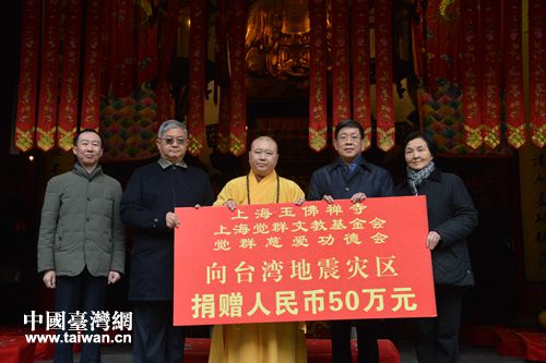 捐贈(zèng)儀式上,上海玉佛禪寺、上海覺(jué)群文教基金會(huì)、覺(jué)群慈愛(ài)功德會(huì)向臺(tái)灣地震災(zāi)區(qū)捐贈(zèng)50萬(wàn)元。玉佛禪寺全體僧職人員及護(hù)法居士、覺(jué)群志工代表也紛紛伸出援手。