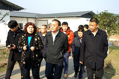 四川省委常委、省委農工委主任李昌平(中)實地考察臺資企業(yè)成都鈞喬農業(yè)科技開發(fā)有限公司。