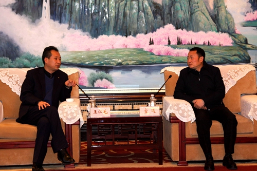 眉山市委常委宣迅(右)會見王仁毛董事長。