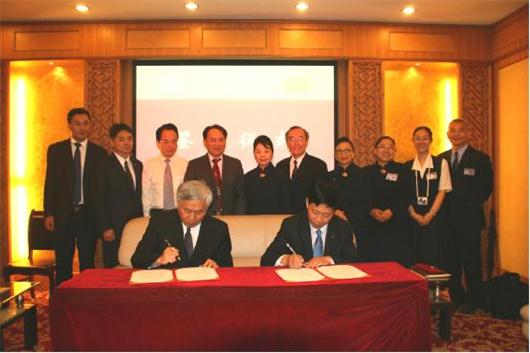 圖為胡剛校長(右)與王本榮校長(左)簽署兩校合作備忘錄。