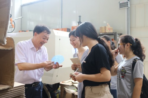 新代實(shí)業(yè)的鄭副廠長(zhǎng)向?qū)嵺`隊(duì)介紹橡皮泥包裝盒
