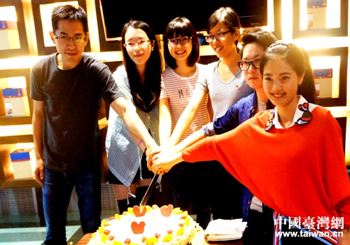 當月生日的臺生一起切蛋糕。(圖片來源:北京臺聯(lián))