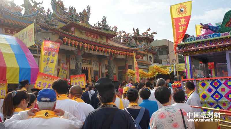 21日,前來觀禮的信眾將高雄道德院圍得水泄不通。(四川省臺辦供圖)