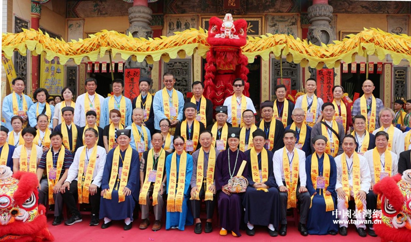 高雄道德院住持太乙宗師翁太明、四川省道教協(xié)會會長唐誠青與參與法會團體合影。(《臺灣導報》記者李鳴盛拍攝)