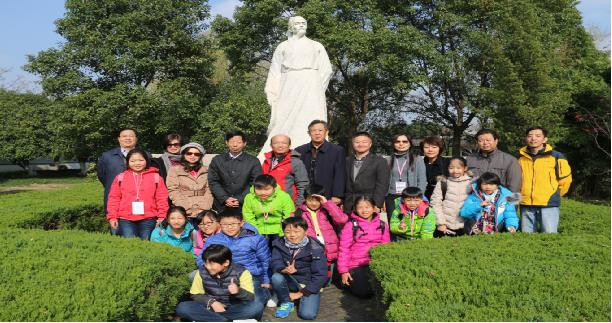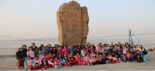 江尾海頭,金橋飛架,參訪首站是位于長(zhǎng)江之濱的江陰鵝鼻嘴公園。新北大豐小學(xué)的師生及家長(zhǎng)代表們飛躍海峽,結(jié)緣揚(yáng)子江畔。