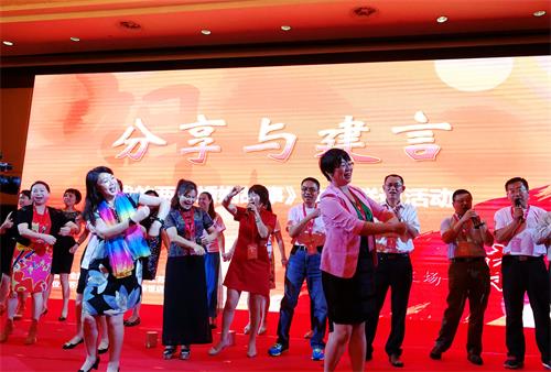 活動還開設了微信互動環(huán)節(jié),遴選出了十個“幸福故事”和十句“幸福箴言”,進行了現(xiàn)場分享。“我做過最不后悔的決定就是嫁給你”“有你才有了完整的家”“愛是無言的,我懂你”“幸福很簡單,過馬路有人牽著就好”“你帶我到天涯海角,我?guī)一刈鎳鴾嘏膽驯А薄痪渚鋹鄣谋戆,讓現(xiàn)場的空氣里都彌漫著愛的氣息。最后,在《我們都是一家人》的歌聲中,大家手牽著手,載歌載舞,共同表達著對兩岸有情人終成眷屬、兩岸永遠是一家人的美好祝愿。