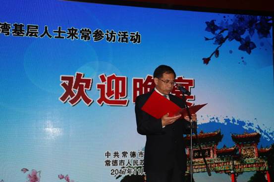 常德市臺(tái)辦主任王宏斌主持歡迎儀式。(圖片來源:常德市臺(tái)辦)