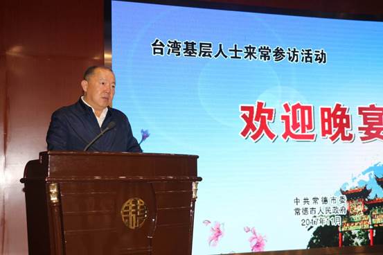 4日晚,中共常德市委、市人民政府設(shè)宴歡迎侯彩鳳一行。湖南省臺(tái)辦副主任傅雷、市政協(xié)副主席陳位明出席宴會(huì)并致辭。