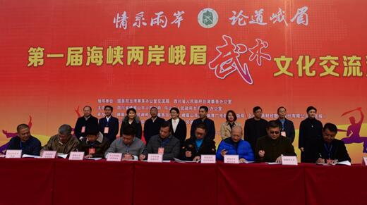 12月21日,以“情系兩岸 論道峨眉”為主題的“第一屆海峽兩岸峨眉武術(shù)文化交流活動”在樂山市峨眉文武學(xué)校舉行。來自臺灣武術(shù)文化代表團、臺灣高雄基層及青年代表團等兩岸1300余位嘉賓以武論道、以武會友。兩岸武術(shù)團體現(xiàn)場展示了中華傳統(tǒng)武術(shù)的魅力。樂山市武術(shù)協(xié)會等6家協(xié)會與臺灣中華武學(xué)交流協(xié)會等3家協(xié)會分別簽署了合作框架協(xié)議。