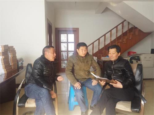 圖為高郵市臺(tái)辦工作人員和金貴發(fā)大陸親屬核實(shí)相關(guān)情況。