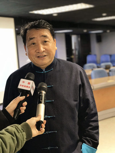 文化名家姜昆接受記者采訪。(圖片來源:九州文化傳播中心)
