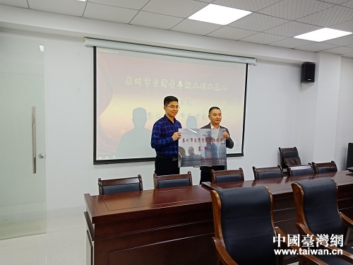泉州市臺辦副主任李朝暉向園區(qū)管委會授牌。(圖片來源:安溪縣臺辦)