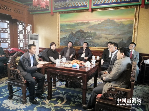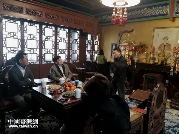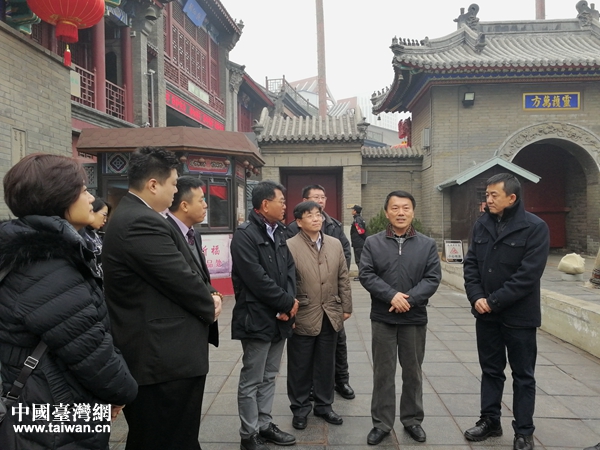 中國臺灣網(wǎng)4月3日天津訊 日前,臺灣維格餅家董事長孫國華率臺灣文創(chuàng)、科技、貿(mào)易等領(lǐng)域企業(yè)負責(zé)人到南開區(qū)參訪交流。市臺辦副主任于為忠、南開區(qū)副區(qū)長徐輝在海峽兩岸交流基地——天津天后宮接待參訪團一行,并就剛剛出臺的《關(guān)于促進兩岸經(jīng)濟文化交流合作的若干措施》(簡稱“31條措施”)以及媽祖文化與文創(chuàng)產(chǎn)業(yè)融合發(fā)展進行深度交流,征求臺商們的意見建議。南開區(qū)有關(guān)單位負責(zé)同志參加活動。