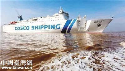 圖為臺胞搭乘的“中遠之星”輪船駛?cè)肱_州大麥嶼港。(圖片來源:臺州市臺辦)