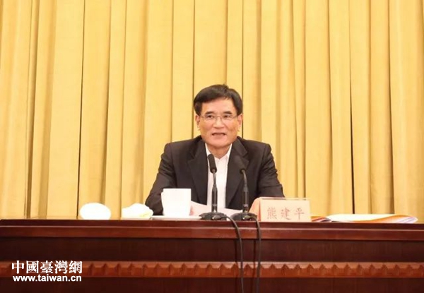 圖為省委常委熊建平出席會(huì)議并講話。(圖片來源:浙江省臺(tái)辦)