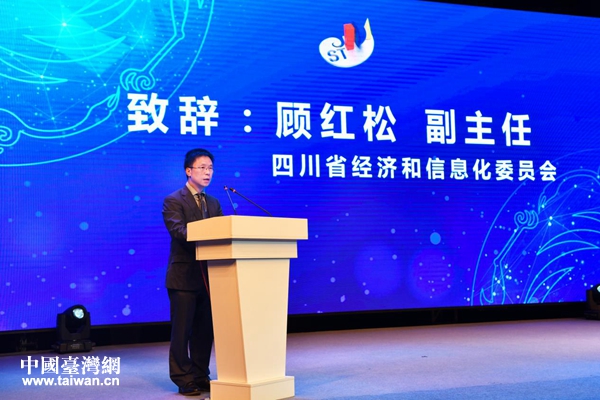 四川省經(jīng)信委副主任顧紅松致辭。(圖片來源:四川省臺辦)