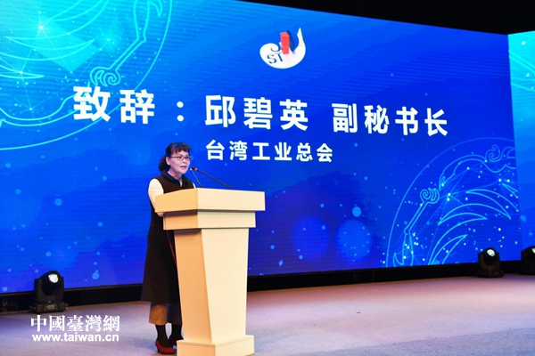 臺灣工業(yè)總會邱碧英副秘書長致辭。(圖片來源:四川省臺辦)