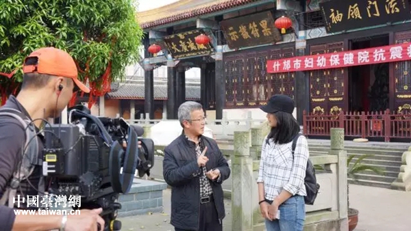在綿竹諸葛雙忠祠采訪。(圖片來源:四川省臺辦)