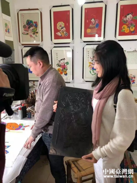 在陳剛老師的耐心講解下,我了解了年畫的制作方法:用自己雕刻好的板子、然后上墨(有加水和膠)用刷子上色,把宣紙蓋上壓一壓,打完線稿后上色、過程非常繁復(fù),常常一張畫都要畫上一整天。(作者:臺灣中國電視公司記者 楊茵)