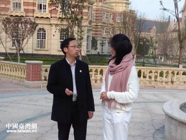 在綿竹大學(xué)城采訪。(圖片來源:四川省臺辦)
