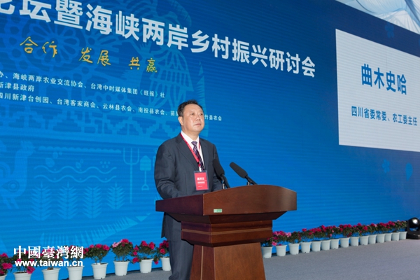 中共四川省委常委、省委農(nóng)工委主任曲木史哈在論壇上致辭。(圖片來(lái)源:四川省臺(tái)辦)