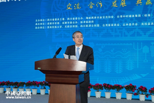 農(nóng)業(yè)農(nóng)村部辦公廳巡視員、副主任陳邦勛在論壇上致辭。(圖片來(lái)源:四川省臺(tái)辦)