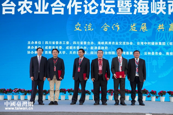省委農(nóng)工委常、省臺(tái)辦共同為第二批“川臺(tái)農(nóng)業(yè)合作示范基地”授牌。(圖片來(lái)源:四川省臺(tái)辦)