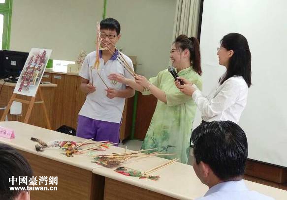 苗栗縣頭份中學(xué)的學(xué)生學(xué)習(xí)表演皮影戲。(圖片來源:濟(jì)南市臺辦)